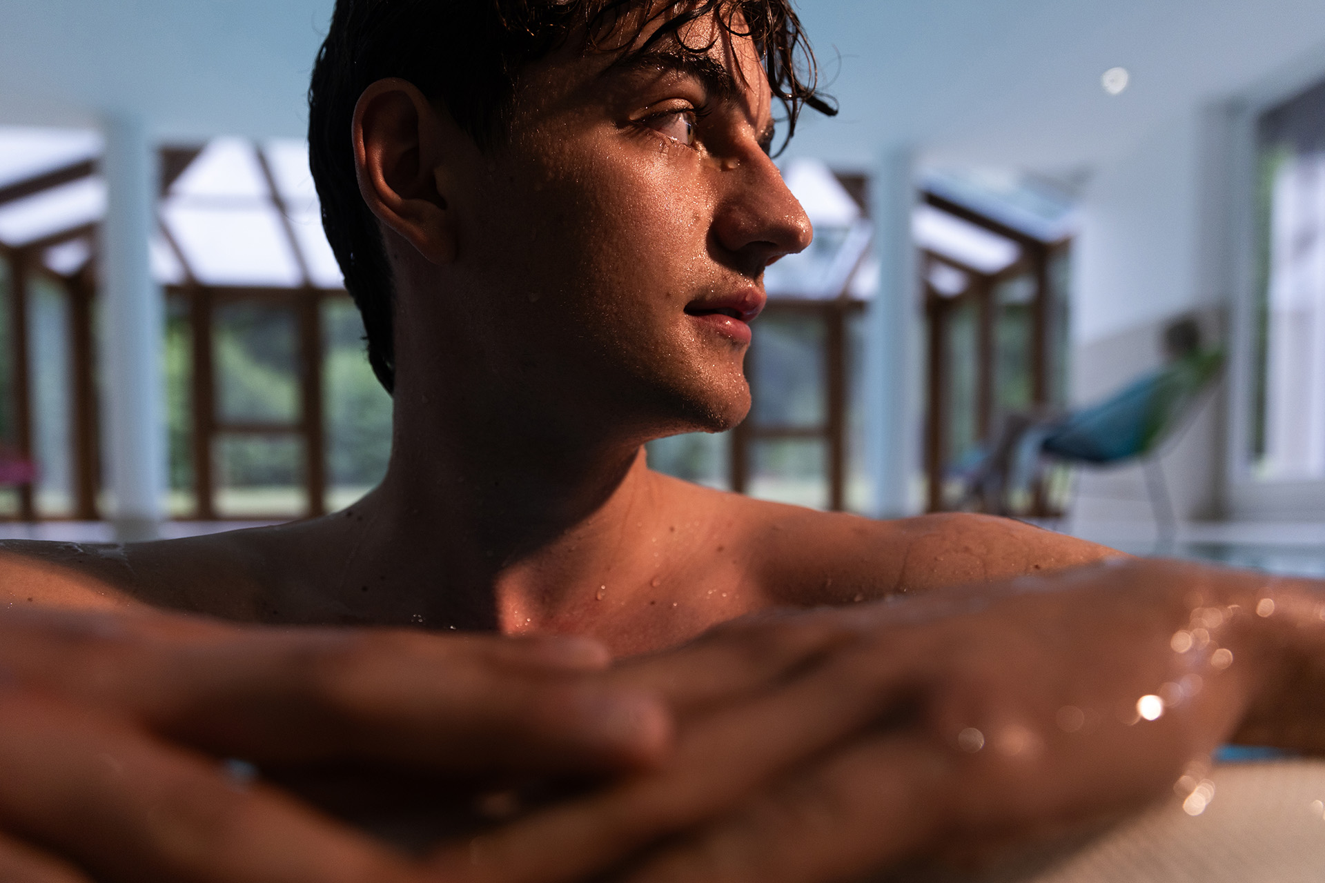 Schwimmen im Licht: Panoramafenster verwandeln Ihren Schwimmzug in ein Naturerlebnis – das Grün der Rhön begleitet jeden Moment.