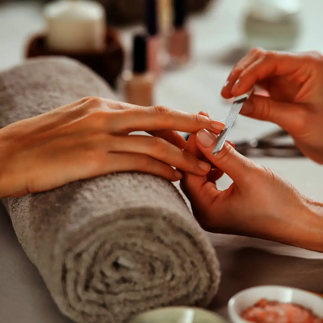 Klassische Eleganz in ihrer schönsten Form – erleben Sie das achtsame Schneiden und Feilen Ihrer Fingernägel als Ritual der Perfektion. Die sanfte Beseitigung der Nagelhaut und das glänzende Polieren mit pflegender Nagelpflege lassen Ihre Hände in gepflegter Natürlichkeit erstrahlen (ohne Lack).