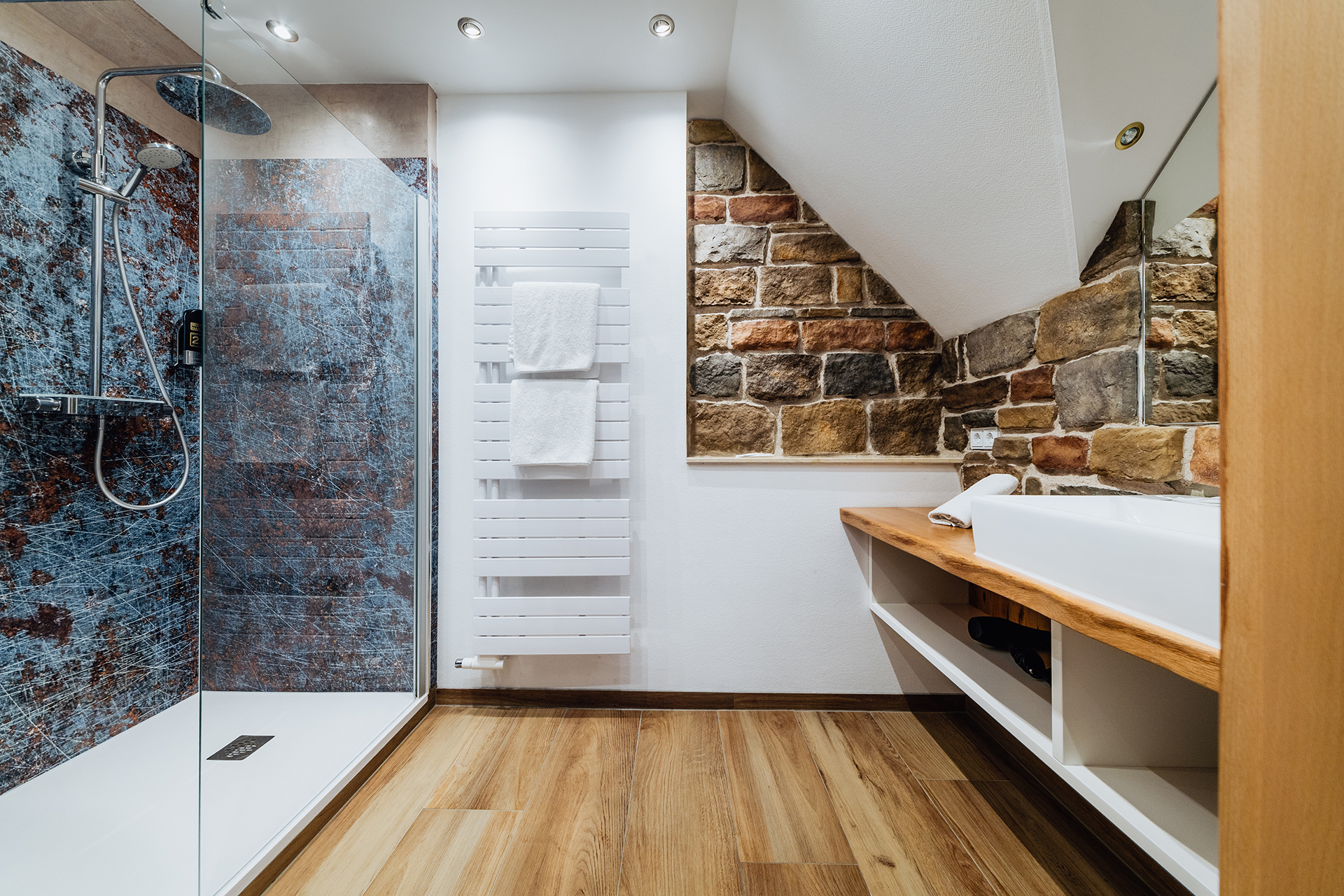 Warmes Holz und sanfte Farbtöne erschaffen Ihre private Wohlfühloase im ersten Stock. Hier verschmelzen natürliche Materialien zu einem harmonischen Ganzen, in dem Sie sofort zur Ruhe finden. Einige Zimmer überraschen Sie mit einem versteckten Schlafbereich unter dem Dach – Ihr ganz persönlicher Rückzugsort für erholsame Nächte. Spüren Sie die Wärme des Holzes und lassen Sie sich von der gemütlichen Atmosphäre umhüllen.